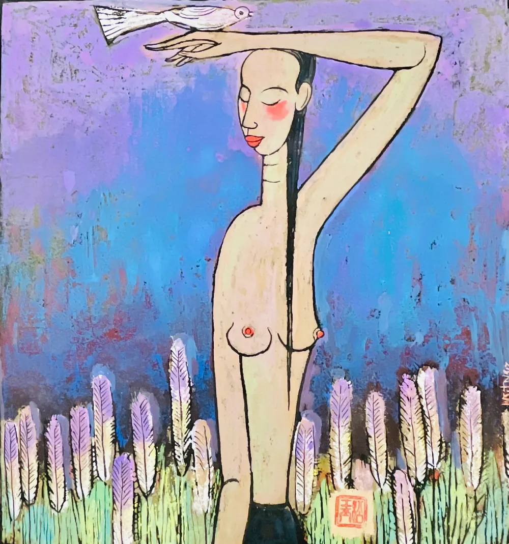 Artist: Nguyen Style: Acrylic on Rice Paper Size 60×60 cm
